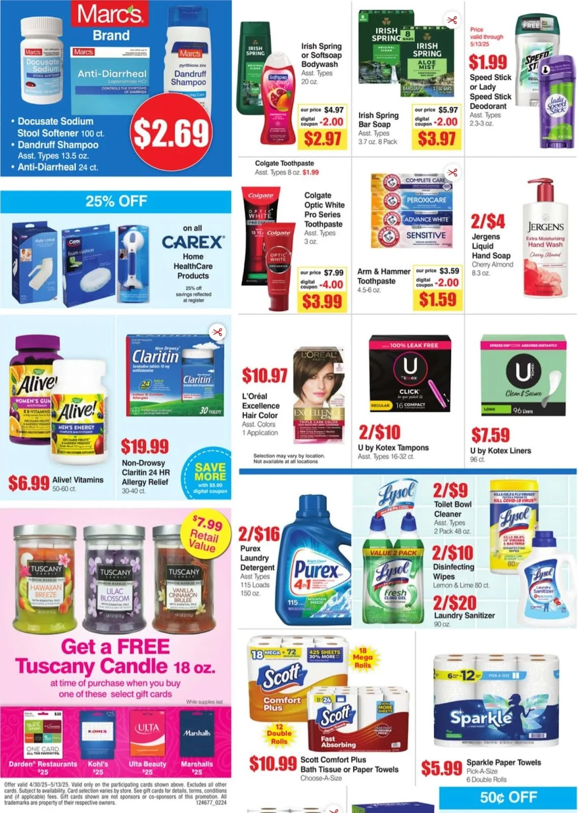 Lastly, Marc's Weekly Ad includes savings on health and personal care products. Enjoy discounts on skincare, haircare, and personal care items. With these health and personal care savings, you can stay clean and healthy without spending too much.